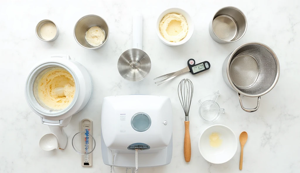 Beyond the ice cream maker, gather these essential tools: a heavy-bottomed saucepan for heating custard, a whisk for blending ingredients, a fine-mesh strainer to remove lumps, an instant-read thermometer for monitoring custard temperature, mixing bowls in various sizes, and airtight freezer-safe containers for storage. Having these tools ready ensures smooth preparation and professional results.